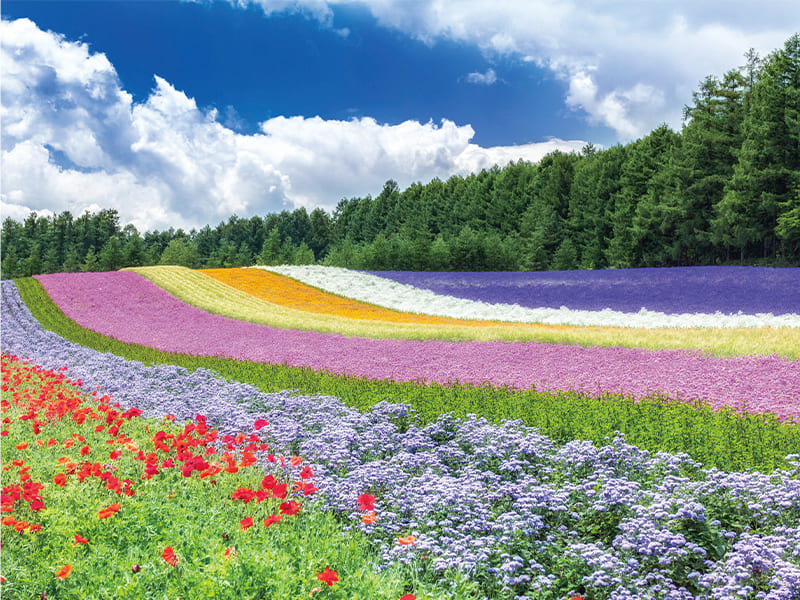 斜面一面に広がるラベンダー畑と色とりどりの季節の花を楽しめます。なかでも中富良野町でしか見られない「白いラベンダー」は必見です。
