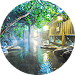 日向灘を望む日南海岸に点在する温泉。宮崎県の南国らしい雰囲気が漂う、リゾートエリアです。周辺には青島神社や鬼の洗濯板といった観光スポットも多く、宮崎市街地へのアクセスも良好です。
